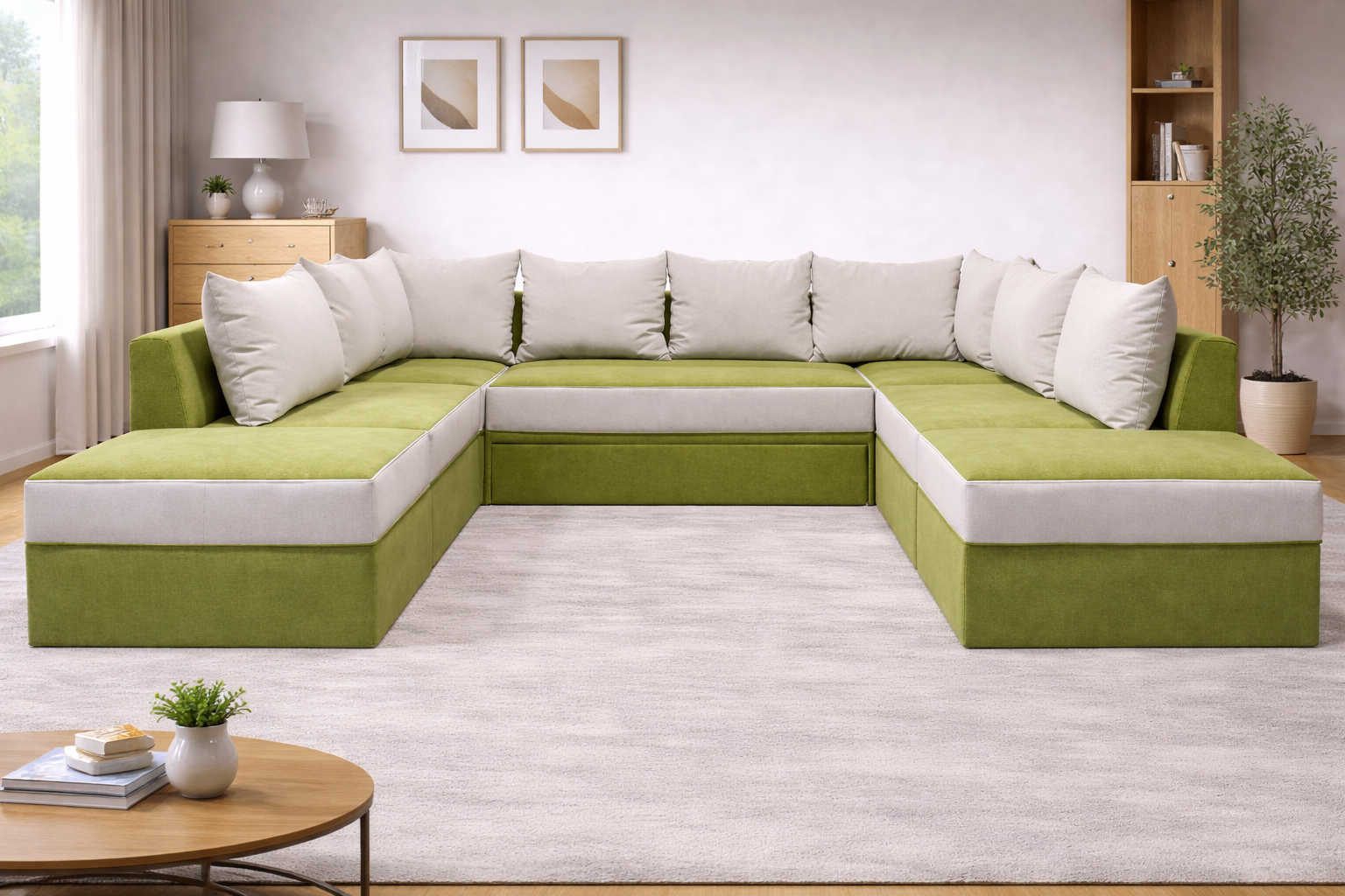 Canapele de colt modulare, extensibile, extrem de functionae, realizata din lemn de fag aburit, cu lada de depozitare. Sezutul si spatarul cu structura de lemn de fag, carcasa de arc Bonelli (saltea relaxa), poliuretan de inalta densitate, eflex 3638, produs nou pe piata europeana in materie de poliuretan, perne dehusabile umplute cu vata siliconizata.