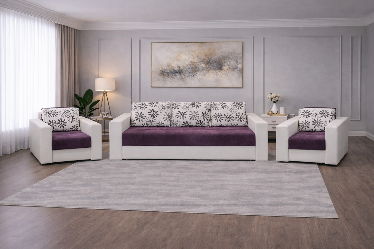 ✔️ Set complet pentru living – 1 canapea extensibilă + 2 fotolii