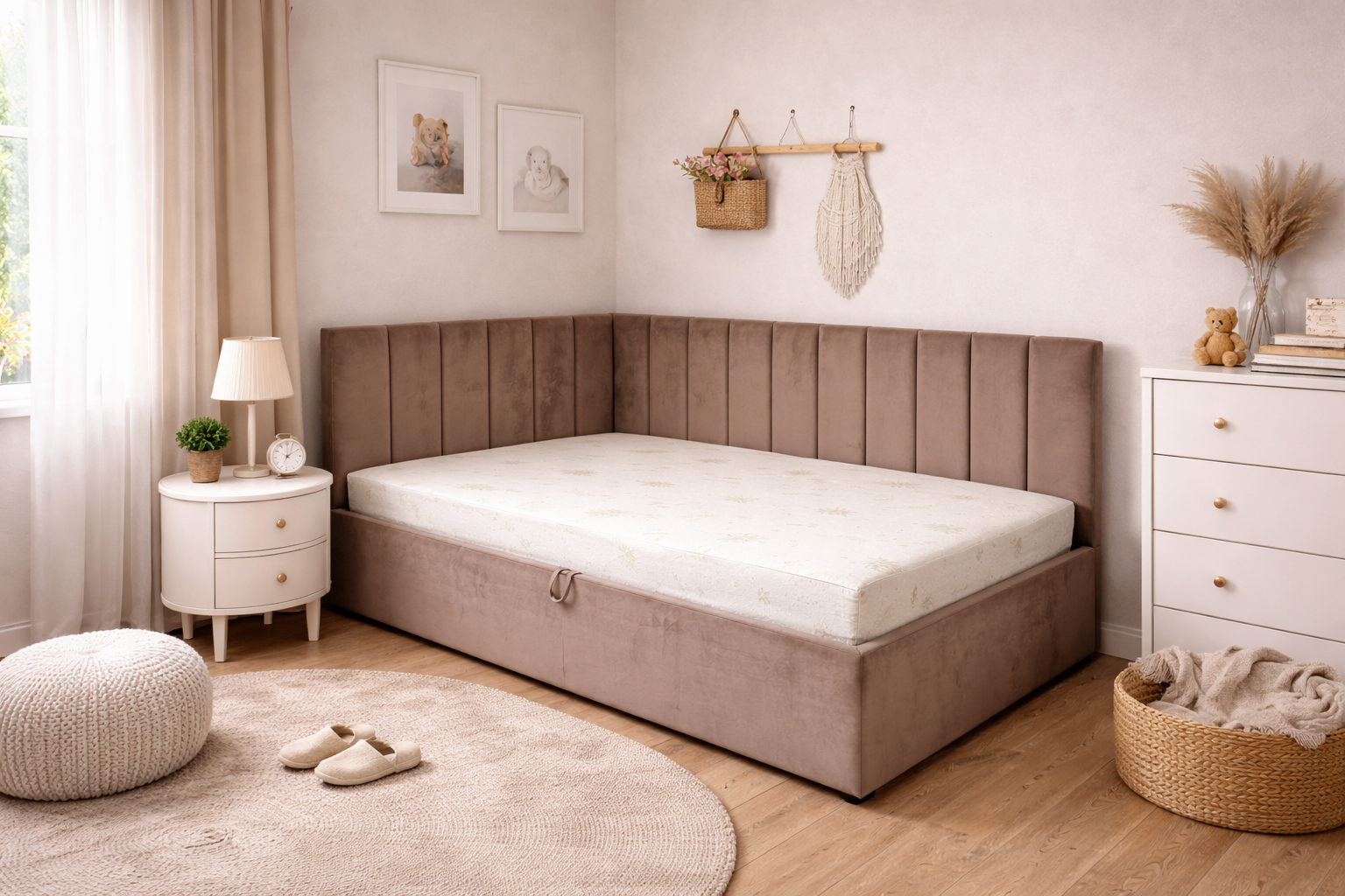 Patul Colț îmbină funcționalitatea cu estetica, oferind un spațiu de odihnă confortabil și bine organizat, perfect adaptat stilului de viață modern.
