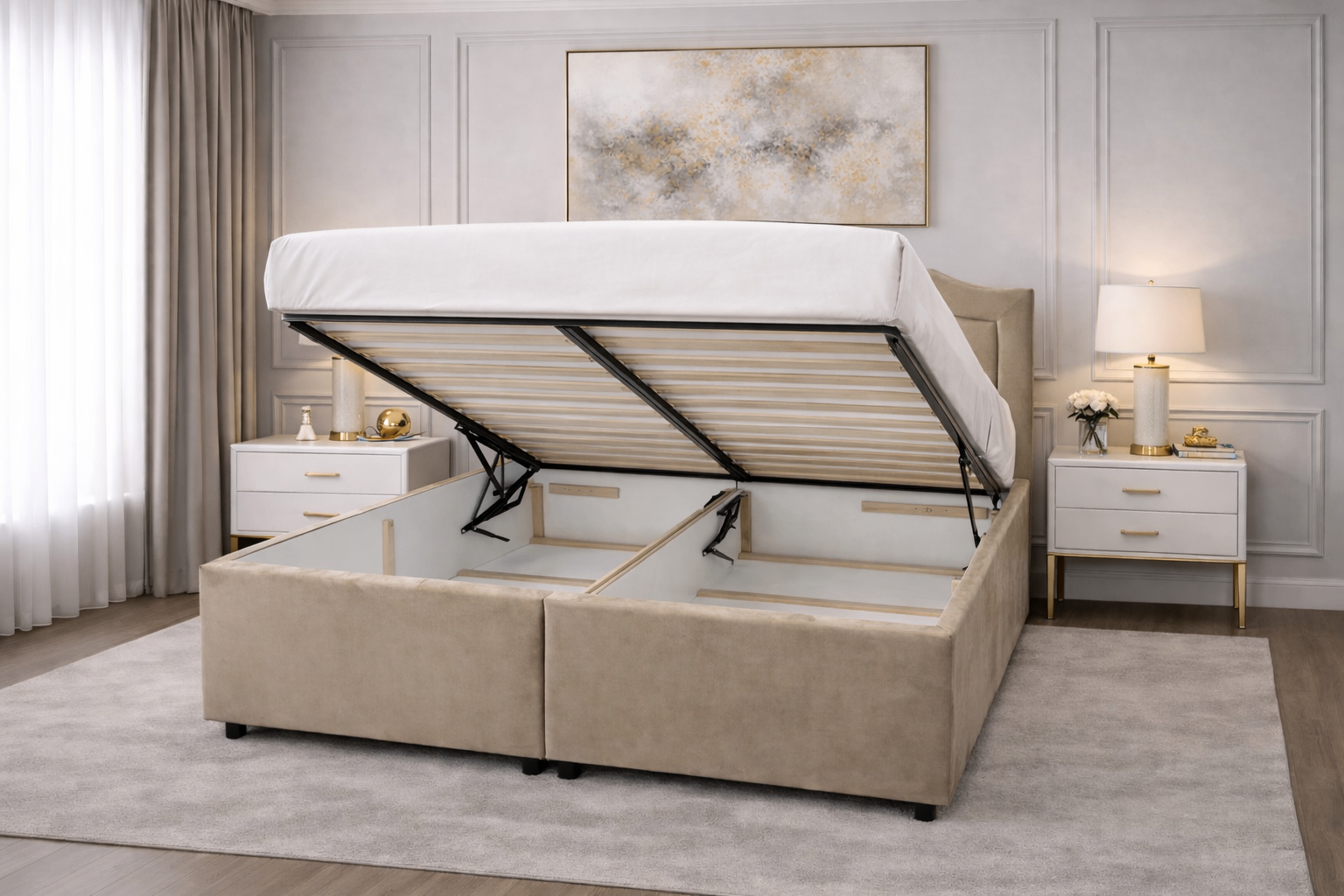 Pat matrimonial este alegerea ideală pentru un dormitor elegant și bine organizat, îmbinând designul modern cu funcționalitatea practică. Patul este prevăzut cu ladă de depozitare spațioasă, accesibilă prin sistemul de culisare al saltelei sus-jos, oferind o soluție eficientă pentru depozitarea lenjeriilor, păturilor sau altor obiecte. Confortabil și robust, acest pat matrimonial devine piesa centrală a dormitorului, aducând atât stil, cât și utilitate.