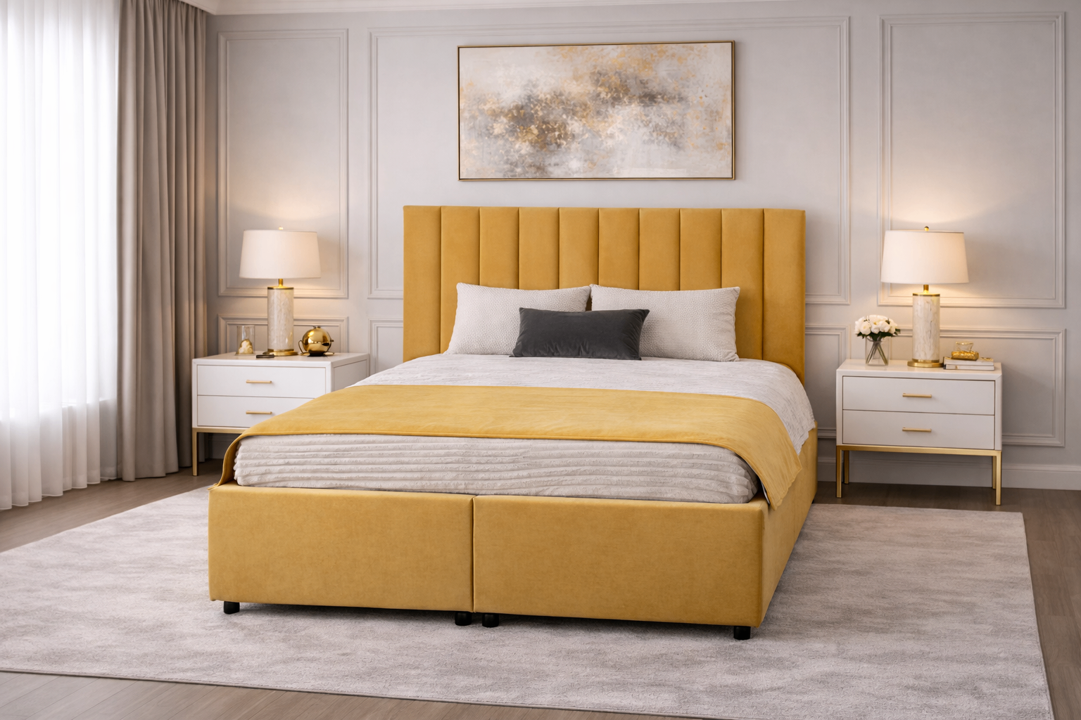 Patul cu Panouri Verticale oferă un design modern și elegant, fiind ideal pentru un dormitor matrimonial confortabil, compatibil cu saltea de 200 × 160 cm.